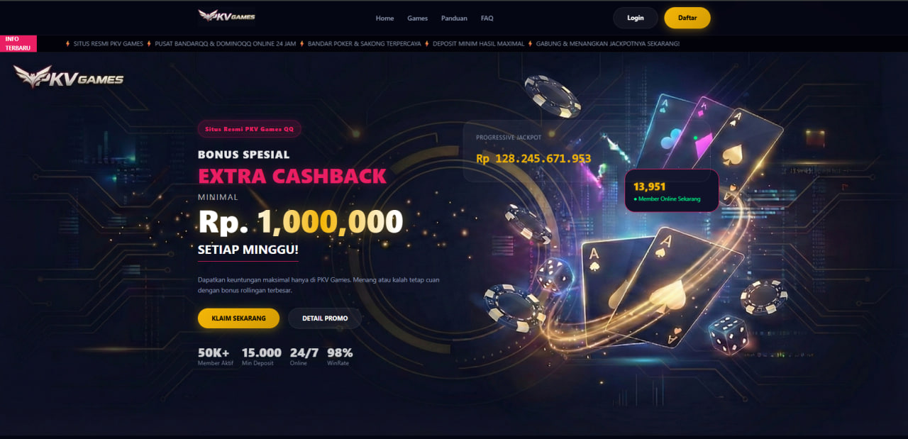 Segera akses halaman login situs PKV Games untuk merasakan pengalaman bermain qq poker online tingkat premium yang belum pernah Anda temukan sebelumnya. Kami menghadirkan ekosistem permainan kartu paling komprehensif, mulai dari legenda klasik seperti DominoQQ, BandarQQ, BandarQ, dan Domino99, hingga inovasi modern seperti PKV Slot serta Judi Bola, yang semuanya terintegrasi secara seamless hanya dalam satu User ID. Didukung oleh infrastruktur server berkecepatan tinggi yang menjamin kelancaran akses tanpa lag, sistem deposit kilat yang aman, serta layanan Customer Service profesional yang siap melayani 24 jam nonstop baik melalui desktop maupun smartphone, situs pkv qq ini hadir sebagai solusi mutlak bagi para pemain cerdas yang mengutamakan keamanan privasi, kenyamanan maksimal, dan peluang kemenangan (Winrate) tertinggi di kelasnya.